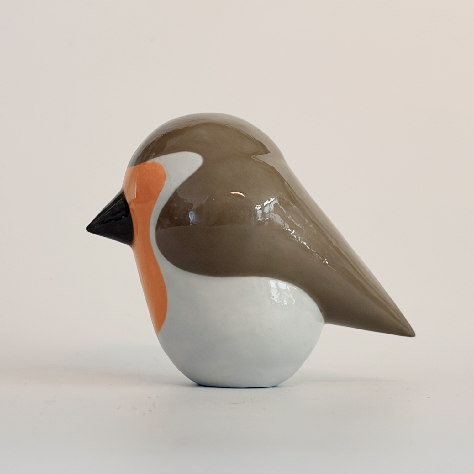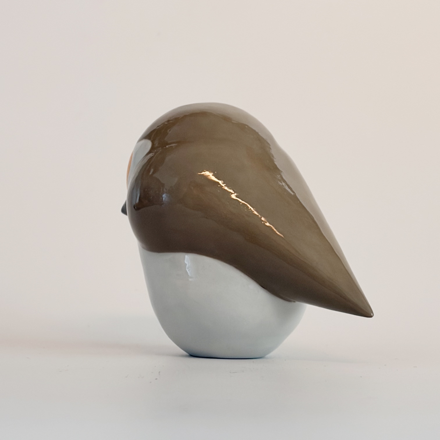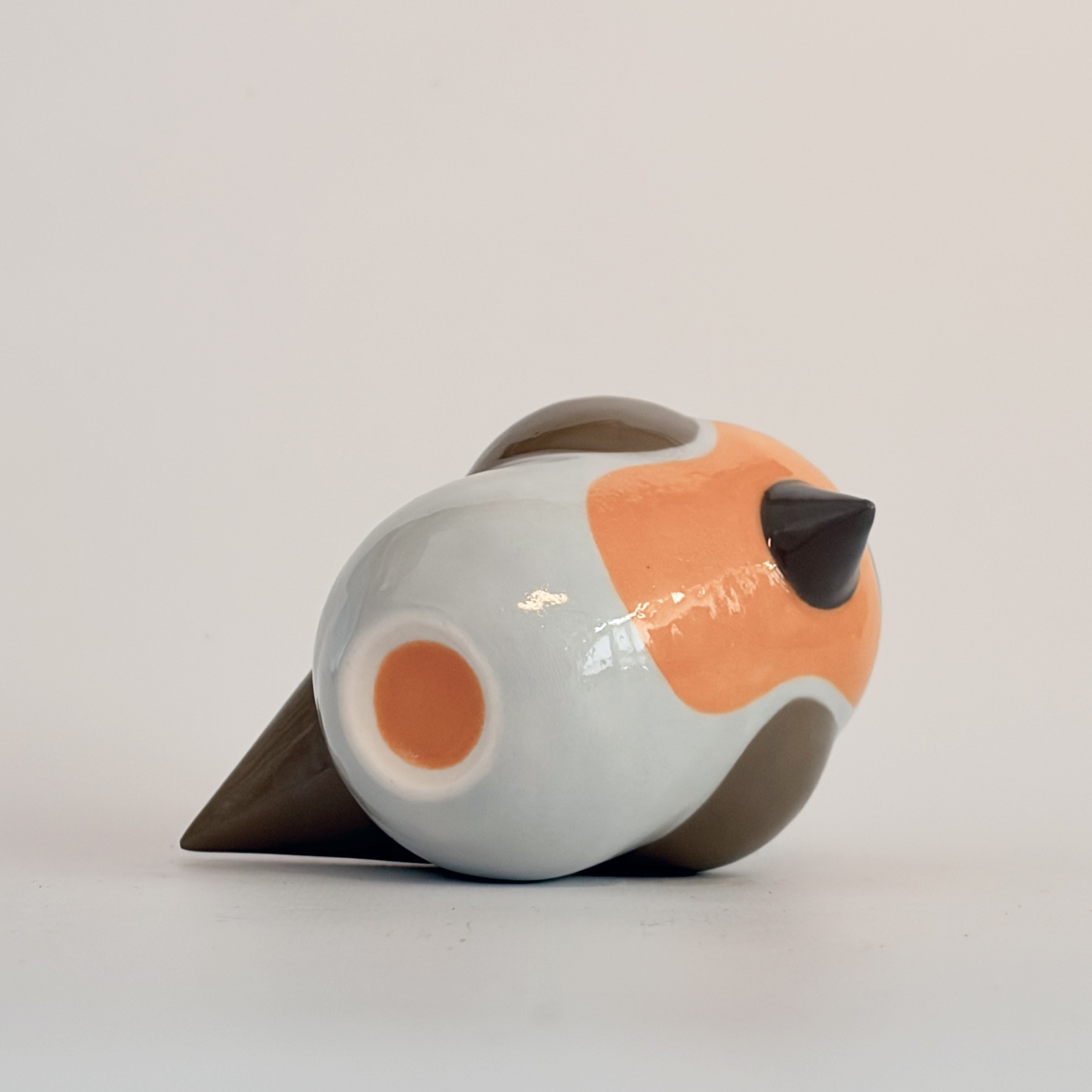 Porcelain bird, painted with lots of care and dipped in a glossy transparant glaze.