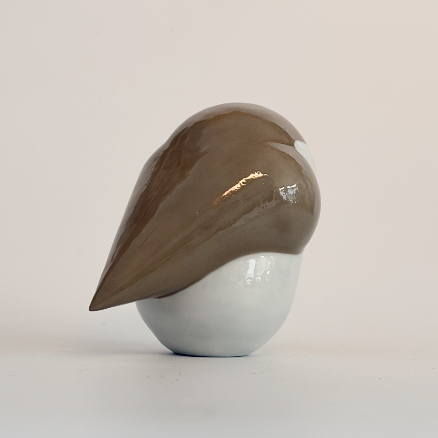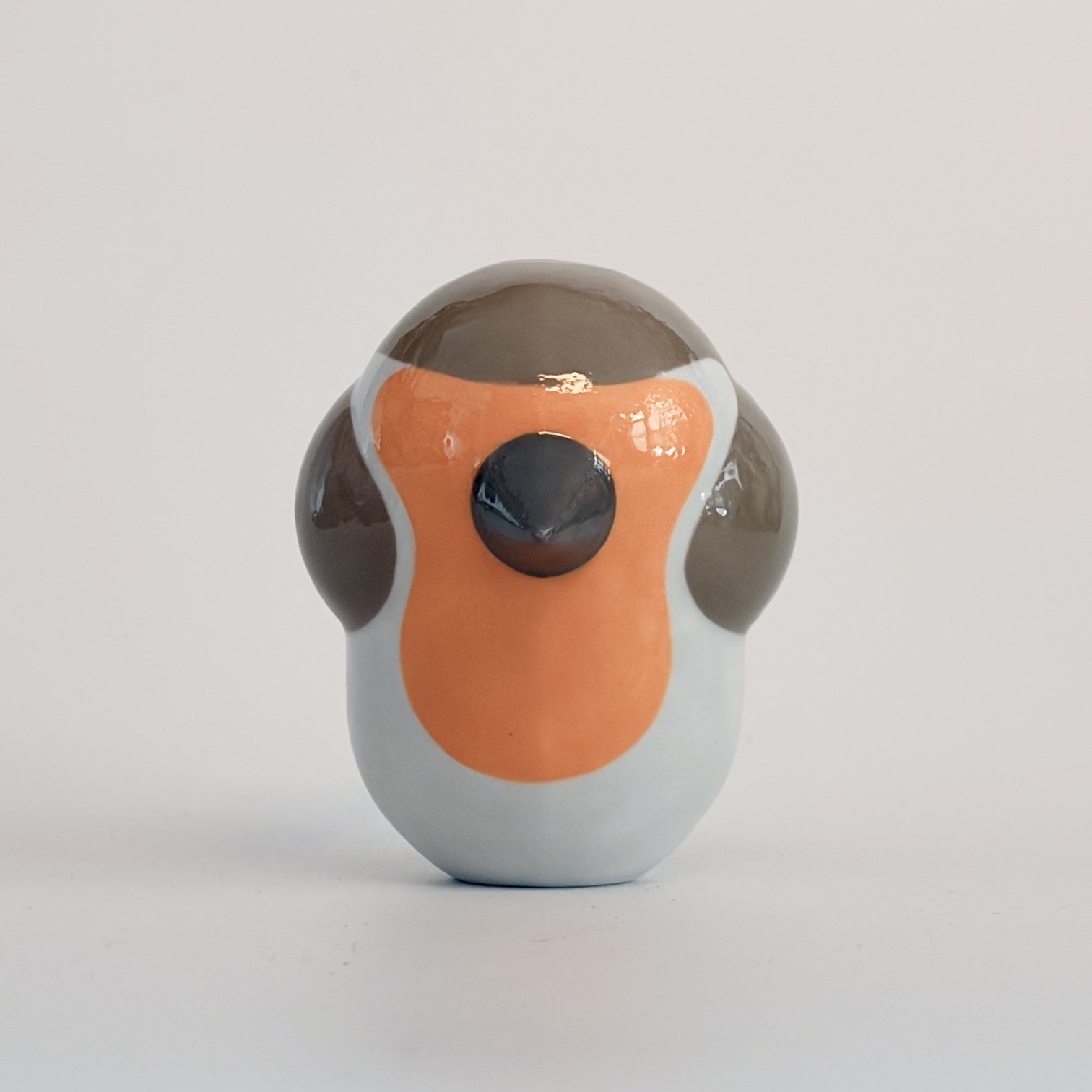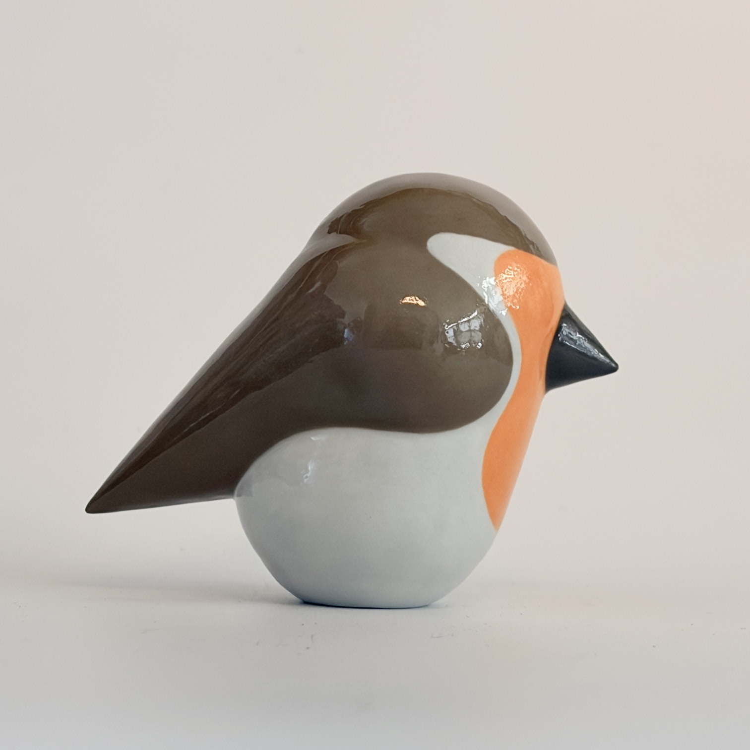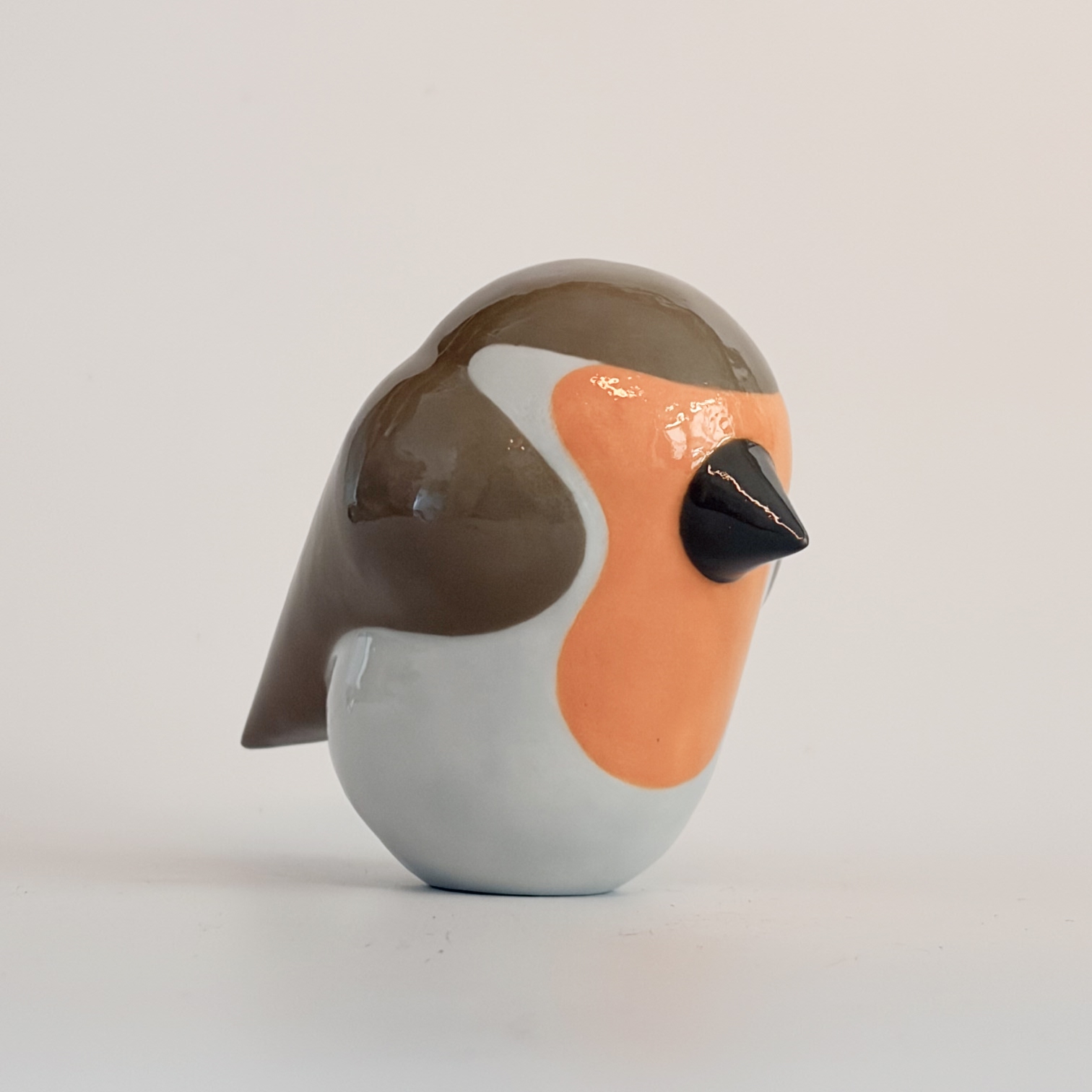 Porcelain bird, painted with lots of care and dipped in a glossy transparant glaze.
