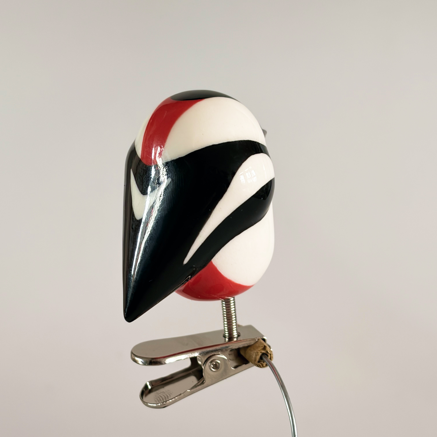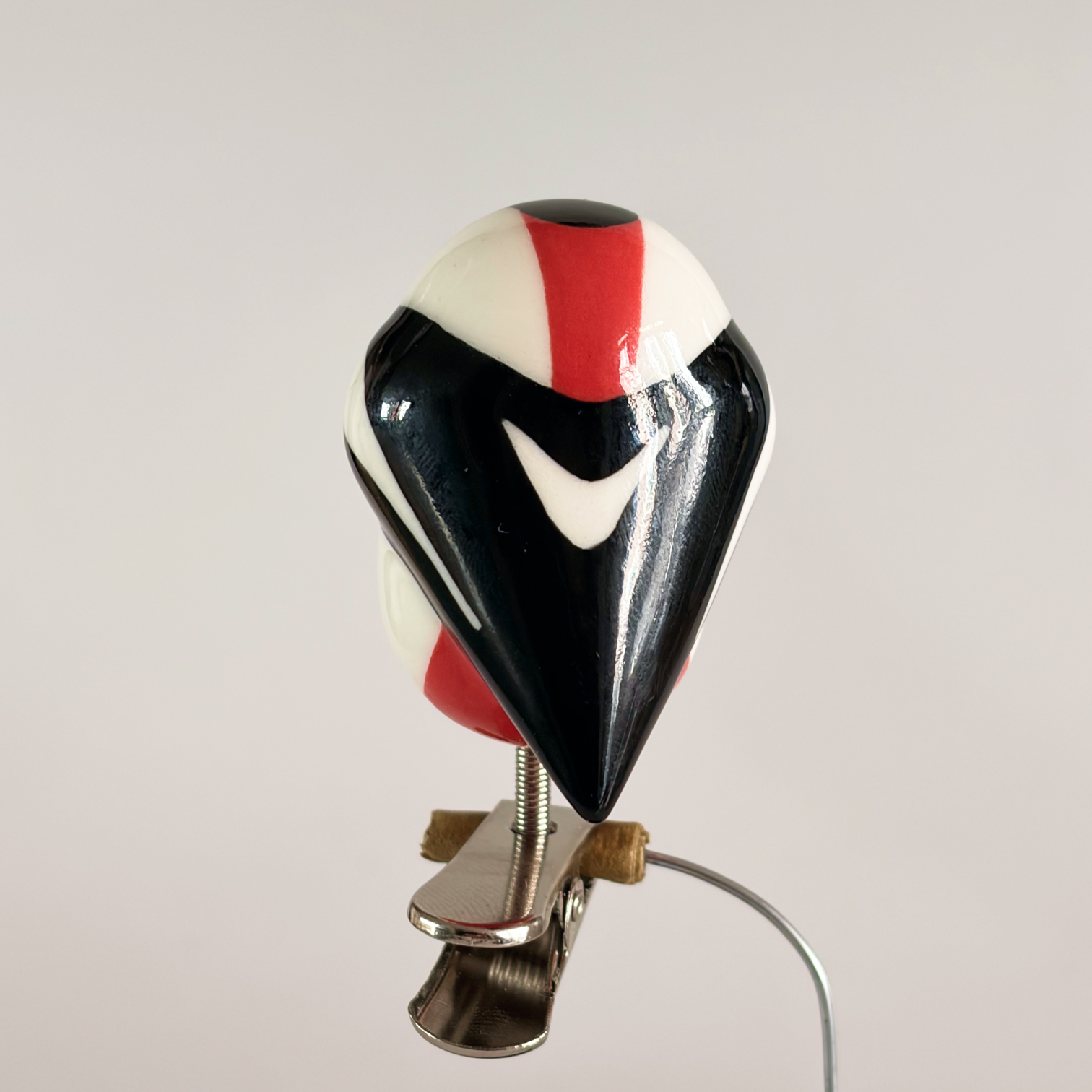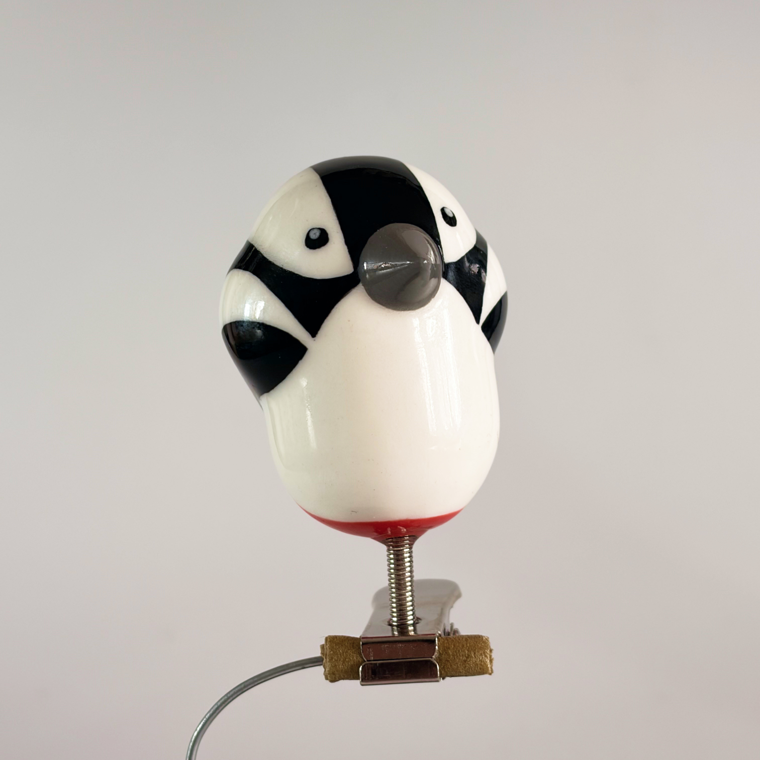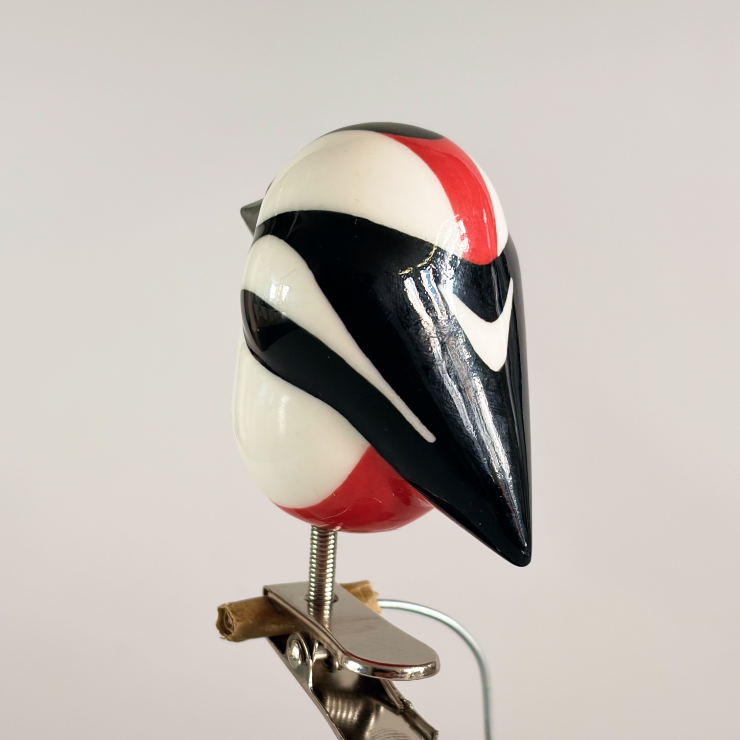 Small porcelain bird on a clip, painted with lots of care and dipped in a glossy transparant glaze.