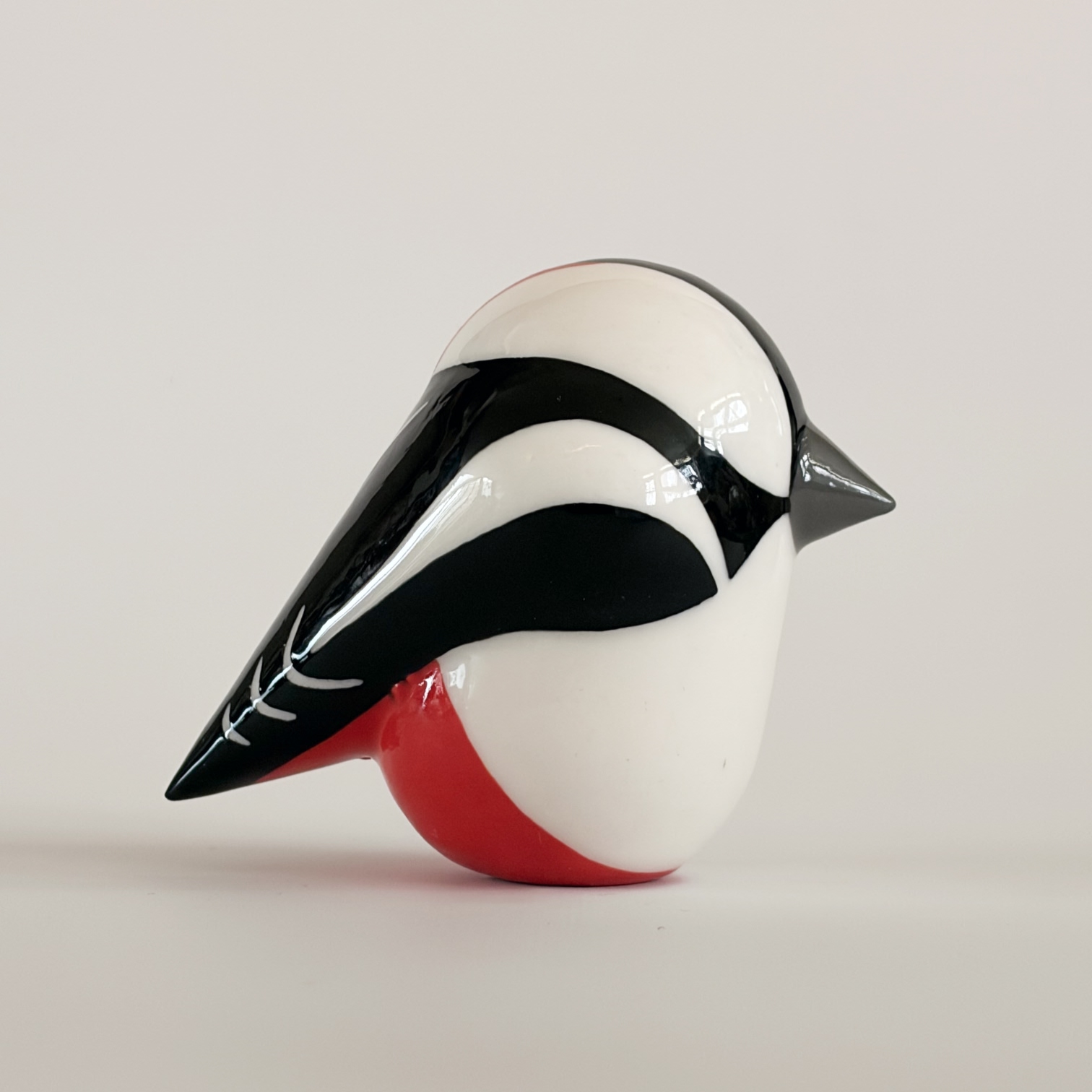 Porcelain bird, painted with lots of care and dipped in a glossy transparant glaze.